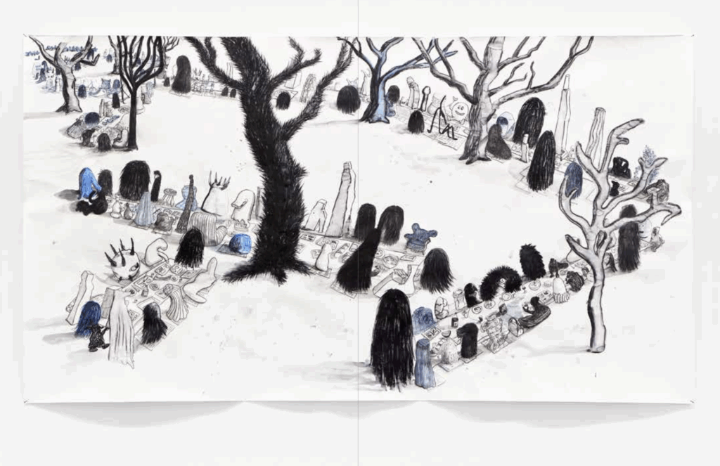 The exhibition spaces of the Kunstverein have been shaped around this 1:1 situation. An anteroom separates the abundance of the outside world from the stillness of the space dedicated to one work. On the mezzanine, an additional room—featuring a four-meter-long table, a shelf, and a growing archive accompanying the die zeiten series—serves as a place for lingering and discourse.